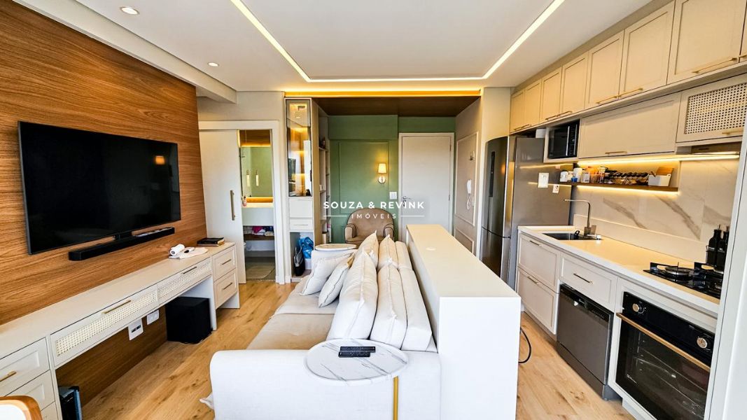 ✨ Sala e cozinha integradas, com design moderno e funcional